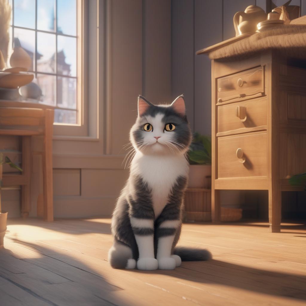 prompt = "adorable fluffy cat sitting on a wooden \
