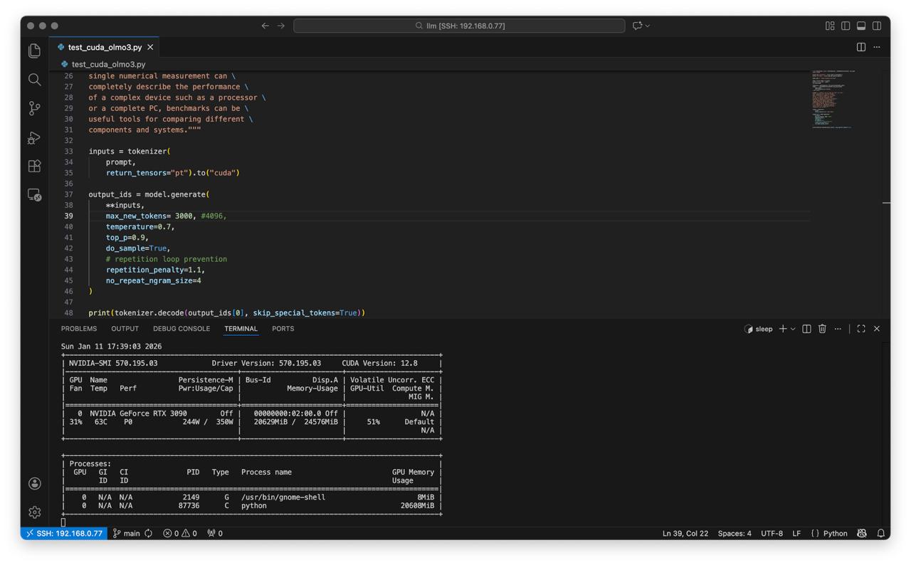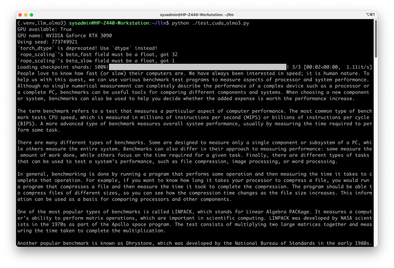 - Create script test_cuda_olmo3.py: